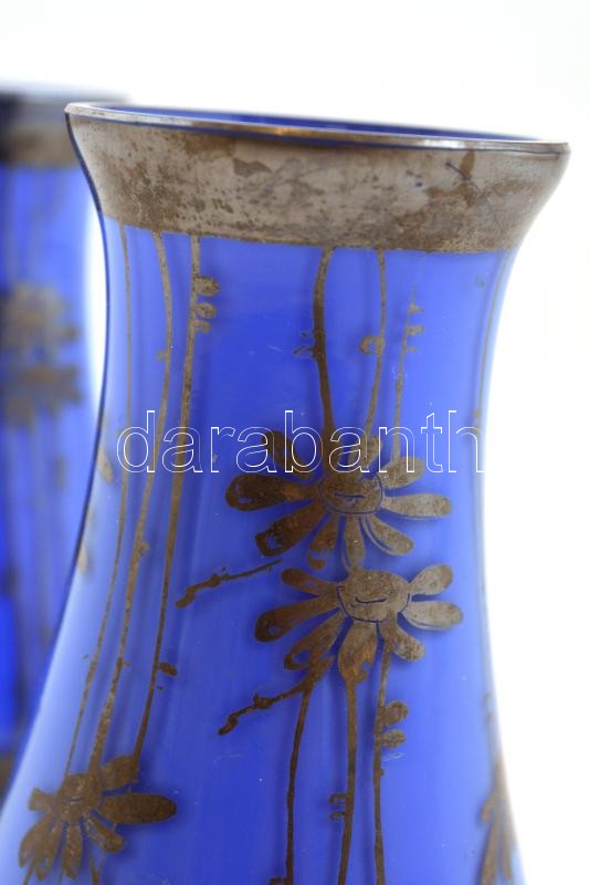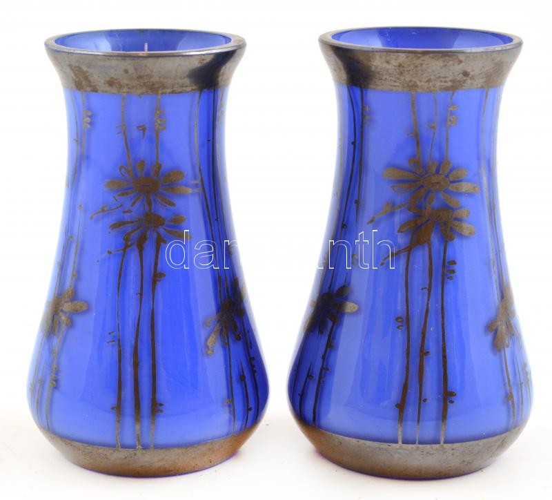 Kék-szürke üveg váza pár (2 db), kopásnyomokkal, m: 10,5 cm https://www.darabanth.com/de/370-Fernauktion/370.0/Porzellan-Keramik-Glass/Glaser~500006/Kek-szurke-uveg-vaza-par-2-db-kopasnyomokkal-m-10-5-cm~II2159846