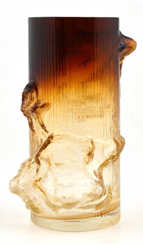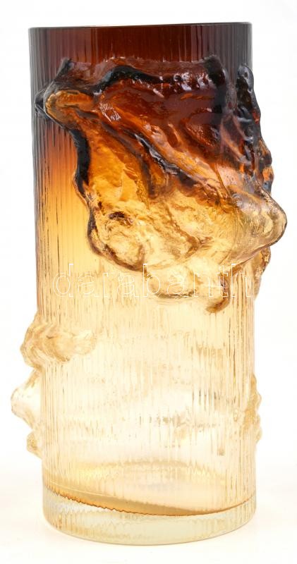 Színátmenetes üveg váza, kidomborodó díszítéssel, jelzett (matricával ... https://www.darabanth.com/de/370-Fernauktion/370.0/Porzellan-Keramik-Glass/Glaser~500006/Szinatmenetes-uveg-vaza-kidomborodo-diszitessel-jelzett-matricaval-es-aljan-is-kis-k~II2154075