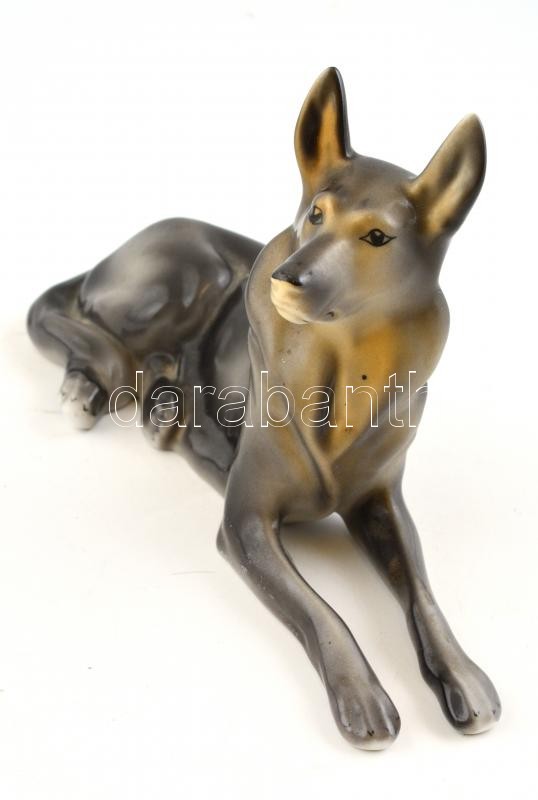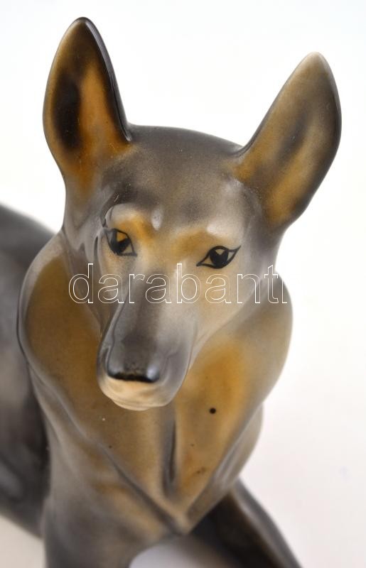 Beschreibung: Hollóházi porcelán kutya, kézzel festett, jelzett, apró kopásnyomokkal, h: 20,5 cm