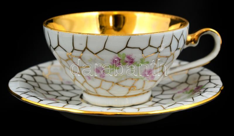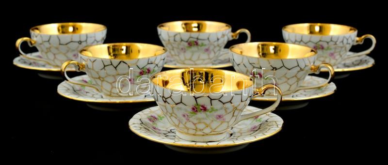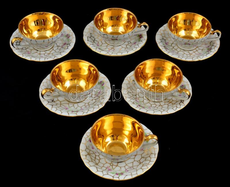 Beschreibung: Jelzett csehszlovák mokkás készlet: 6 csésze, aljjal. Matricás, belül aranyozott, kis kopásokkal