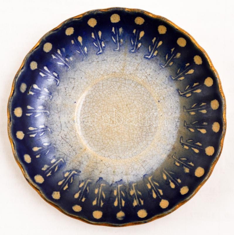 Beschreibung: Porcelán alátét matricás díszítéssel, alján "Párisi Nagy Áruház Budapest" felirat, kopott, d: 10,5 cm