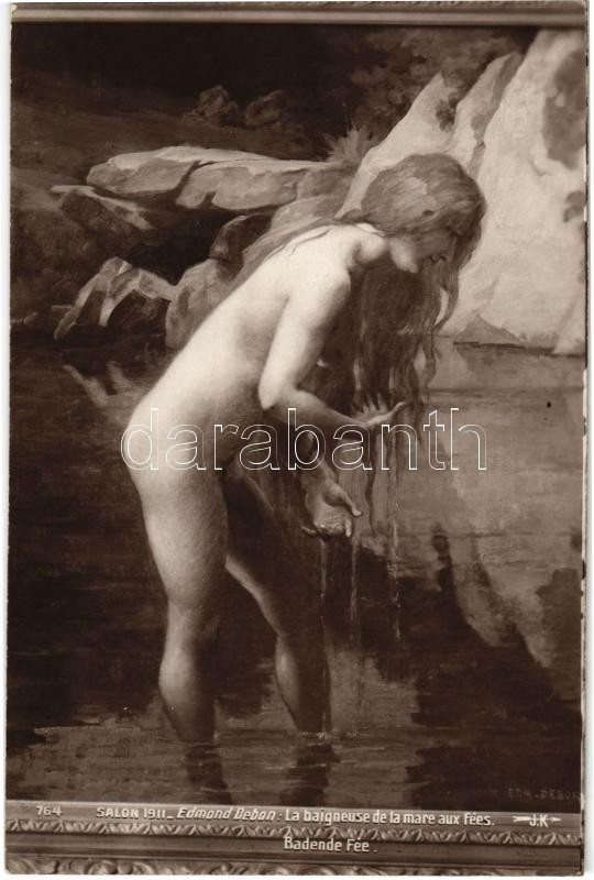 Beschreibung: Badende Fée / La baignaeuse de la mare aux Fées / Erotic nude lady art postcard. Salon 1911. J.K. 764. s: Edmond Debon