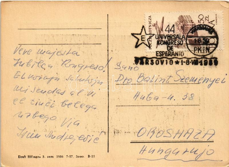 Beschreibung: Eszperantó propagandalap / Esperanto propaganda postcard + "44 Universala Kongreso de Esperanto Varsovio 1-8. VIII. 1959" So. Stpl. (EK)