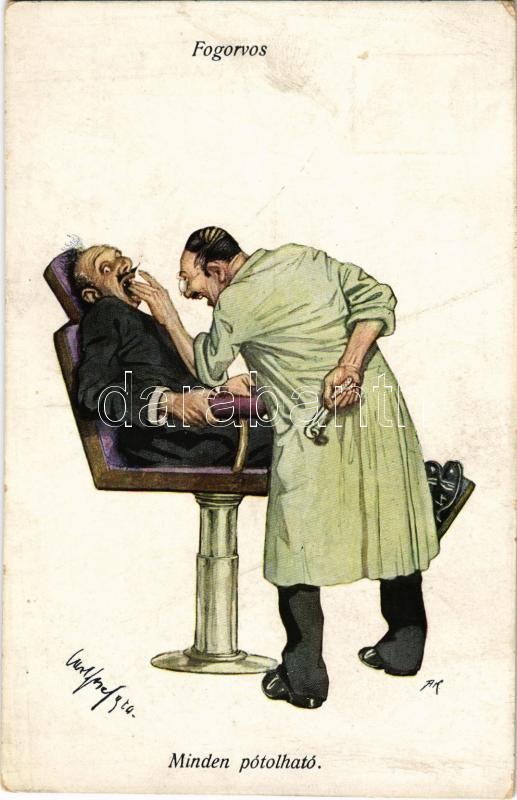 Fogorvos: Minden pótolható / Dentist doctor humour. B.K.W.I. 898-5. s:... https://www.darabanth.com/de/371-Fernauktion/371.0/Ansichtskarten/Kunstlerkarten~1500082/Fogorvos-Minden-potolhato-Dentist-doctor-humour-BKWI-898-5-s-Fritz-Schonpflug~II2166415