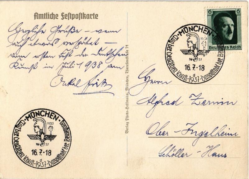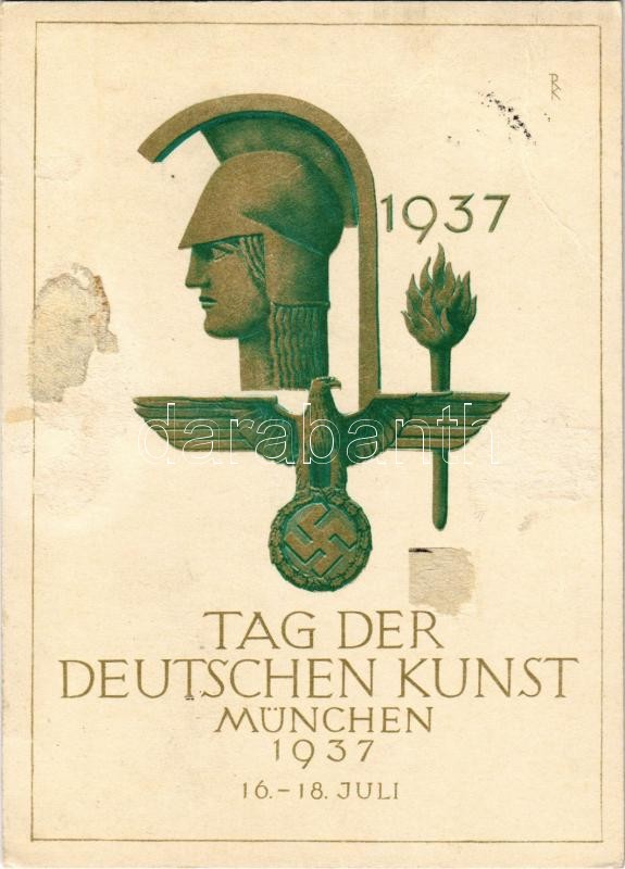 Tag der deutschen Kunst München 1937. 16-18. Juli / German Art Exhibition, NSDAP German Nazi Party propaganda. Verlag Photo-Hoffmann s: R. K. + "München, Tag der deutschen Kunst Hauptstadt der Bewegung" (glue mark)
