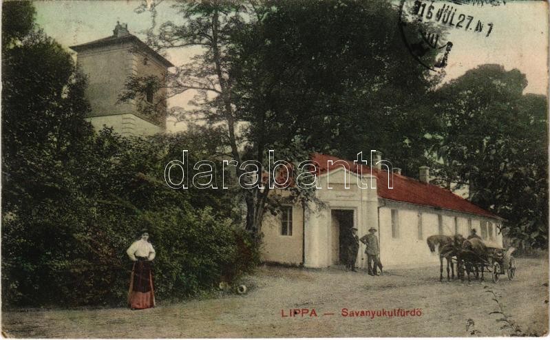 1916 Lippa, Lipova; Savanyúkút fürdő, lovaskocsi. Özv. Krivány Györgyn... https://www.darabanth.com/de/371-Fernauktion/371.0/Ansichtskarten/Siebenburgen~1500006/1916-Lippa-Lipova-Savanyukut-furdo-lovaskocsi-Ozv-Krivany-Gyorgyne-kiadasa-spa-hors~II2163745