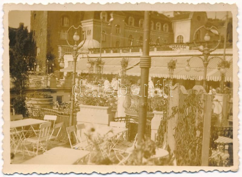 Beschreibung: 1942 Budapest XI. Szent Gellért hullámfürdő terasza. photo (8,3 x 6 cm)