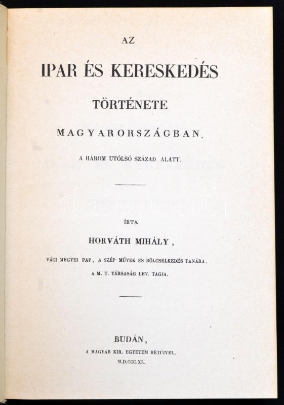 Horváth Mihály: Az ipar és kereskedés története Magyarországban, a három utolsó század alatt. Bp.,1984, ÁKV. Kiadói aranyozott egészvászon-kötés, jó állapotban.