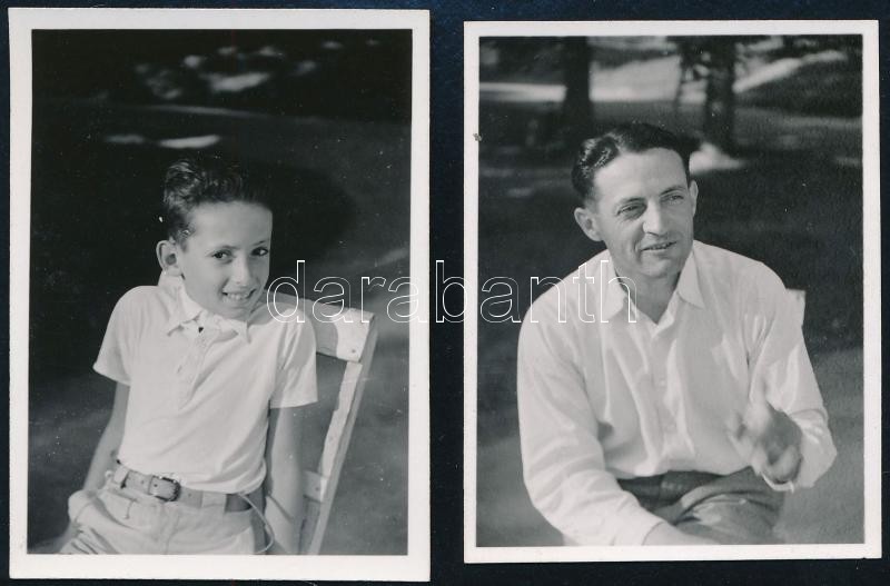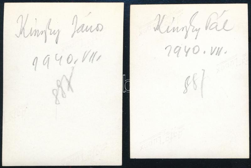 1940 Kinszki Imre (1901-1945) budapesti fotóművész hagyatékából, 2 db jelzés nélküli, feliratozott vintage fotó (Kinszky Pál és Kinszky János), 6x4,5 cm