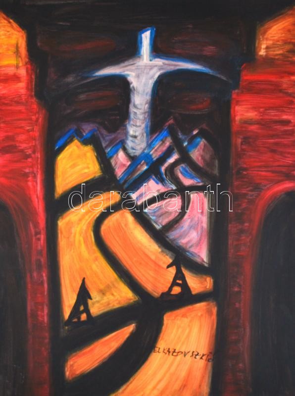 Beschreibung: El Kazovszkij nyomán: Kutya. Olaj, farost. 80x60 cm