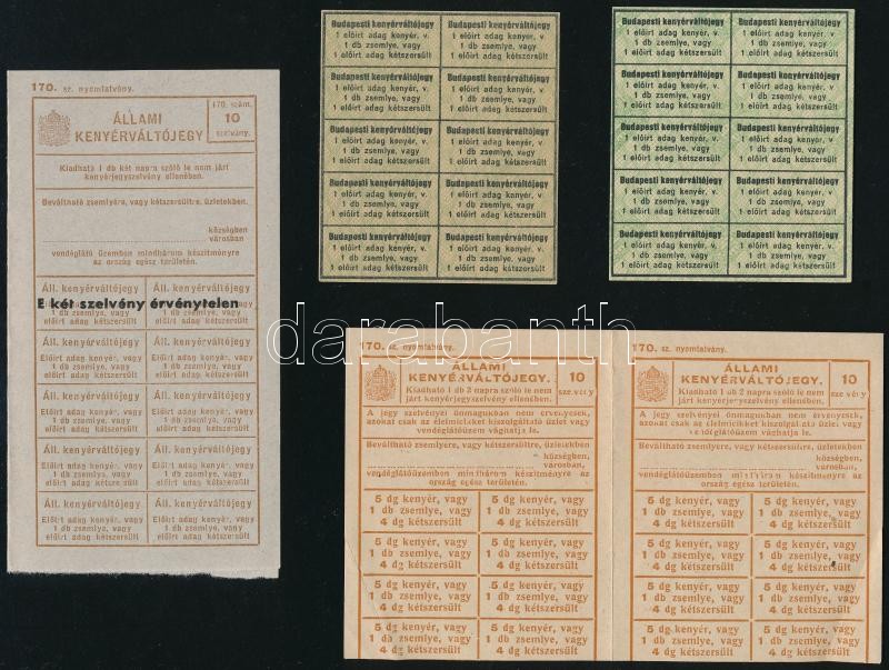 Beschreibung: 1944 Élelmiszerjegyek (kenyér, zsömle, kétszersült)