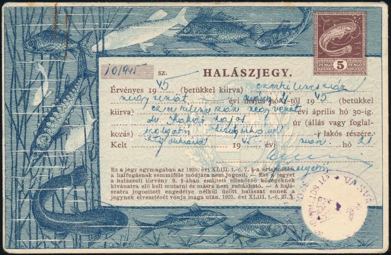 1945 Halászjegy jó állapotban https://www.darabanth.com/de/371-Fernauktion/371.0/Kunst-Dokumente-andere-Sammelgebiete/Dokument~500017/1945-Halaszjegy-jo-allapotban~II2167653