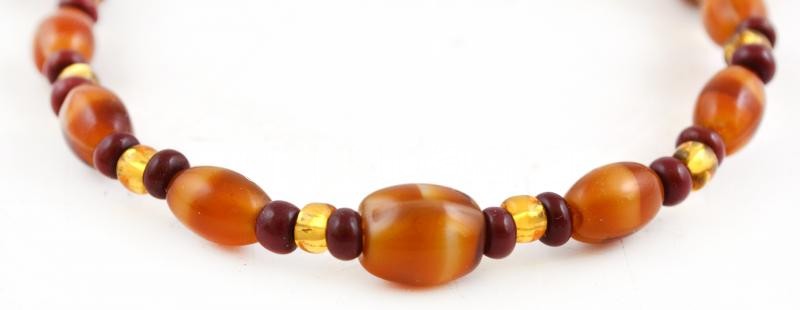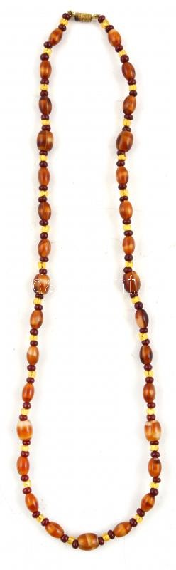 Beschreibung: Barna gyöngyös lánc damilon, h: 55 cm