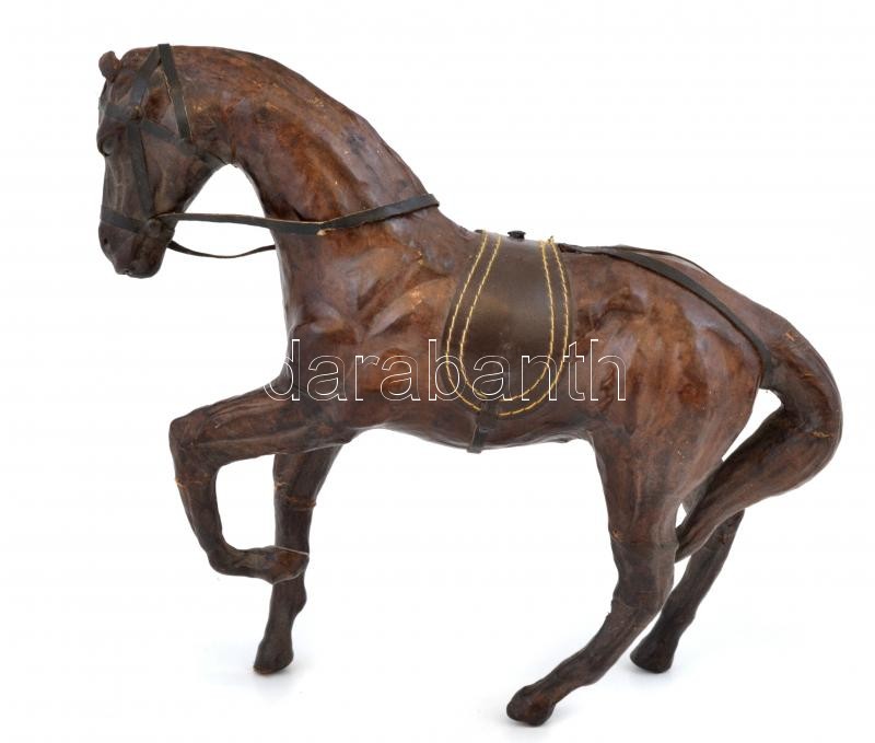 Beschreibung: Fa ló figura, bőr bevonattal, hibás, 29×27 cm