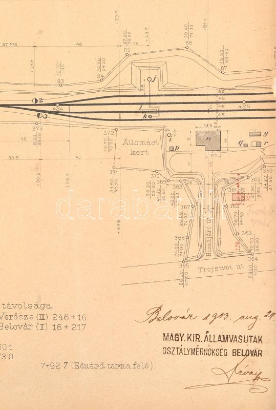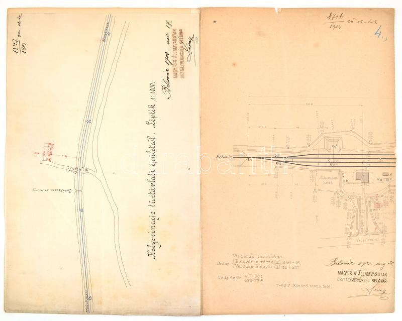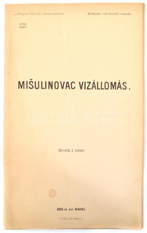 1901-1903 MÁV, Belovár-verőcei vasútvonal Mišulinovac vízállomás tervrajza, 1:1000, hiányos, Bp., Klösz-ny., plusz egy helyszínrajzzal, tervrajz: 34x21 cm, helyszínrajz: 21x33 cm