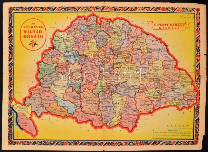 1938 "Az ezeréves Magyarország", ill. hátoldalán "Európa 1938 végén", ... https://www.darabanth.com/de/371-Fernauktion/371.0/Kunst-Dokumente-andere-Sammelgebiete/Landkarten~500028/1938-Az-ezereves-Magyarorszag-ill-hatoldalan-Europa-1938-vegen-Pesti-Hirlap-terkep~II2163068