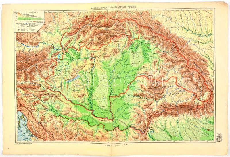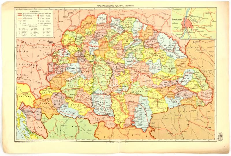 1942 Magyarország politikai térképe és Magyarország hegy- és vízrajzi térképe, kétoldalas térkép, kiadja: M. kir. Honvéd Térképészeti Intézet. A visszacsatolt területekkel. Hajtásnyommal, 29×43 cm