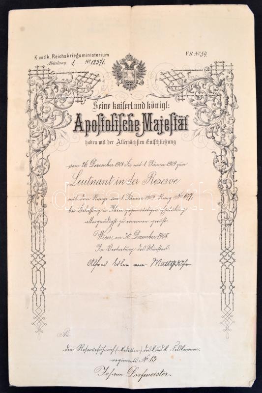 1908 Tartalékos hadnagyi kinevezés https://www.darabanth.com/de/371-Fernauktion/371.0/Kunst-Dokumente-andere-Sammelgebiete/Militaria~500027/1908-Tartalekos-hadnagyi-kinevezes~II2160375