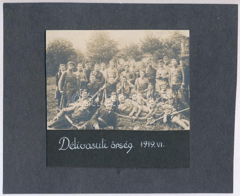 1919 Déli vasúti őrség, 1919. VI., Tanácsköztársaság, fotó kartonon, k... https://www.darabanth.com/de/371-Fernauktion/371.0/Kunst-Dokumente-andere-Sammelgebiete/Militaria~500027/1919-Deli-vasuti-orseg-1919-VI-Tanacskoztarsasag-foto-kartonon-korbevagott-7x10-cm~II2161068