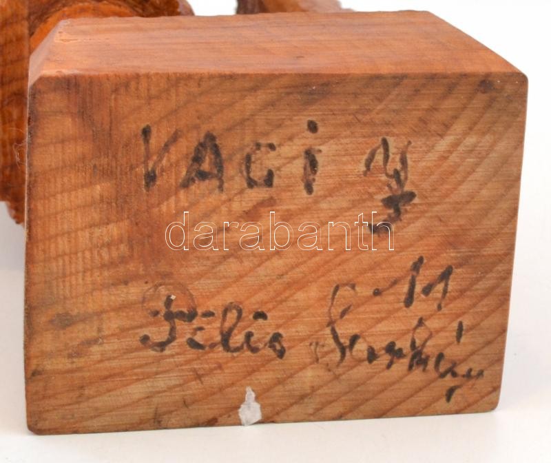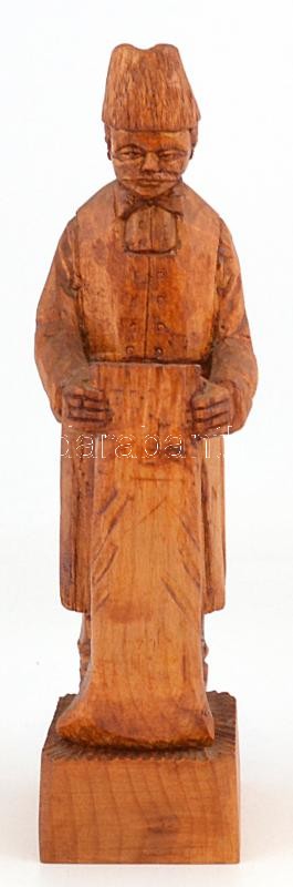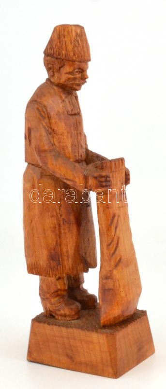 Zsákos ember. Jelzett fa faragvány. 29 cm