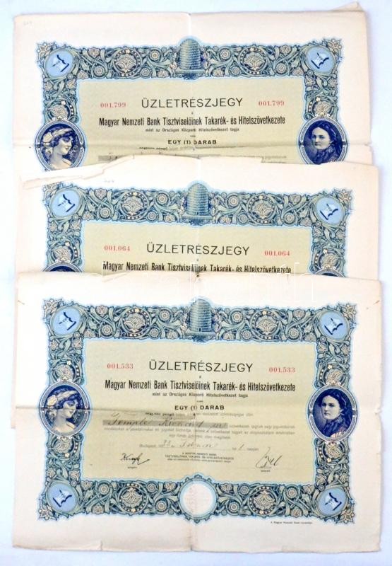 Budapest 1931-1933. "Magyar Nemzeti Bank Tisztviselőinek Takarék- és Hitelszövetkezete" üzletrészjegye 40P-ről, szárazpecséttel, szelvényekkel (3x) T:III