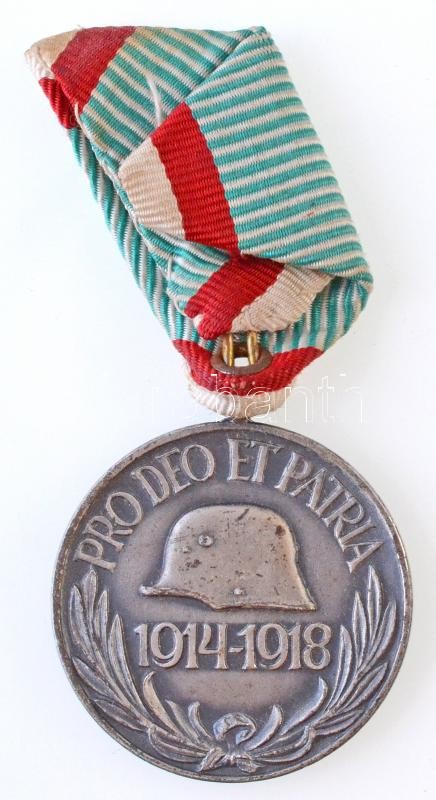 1929. "Magyar Háborús Emlékérem kardokkal, sisakkal" ezüstözött Br kitüntetés mellszalagon, peremen "BRONZ" beütéssel T:2 Hungary 1929. "Hungarian Commemorative War Medal with swords and a helmet" silver plated Br decoration with ribbon, with "BRONZ" hallmark on the edge C:XF NMK 418.