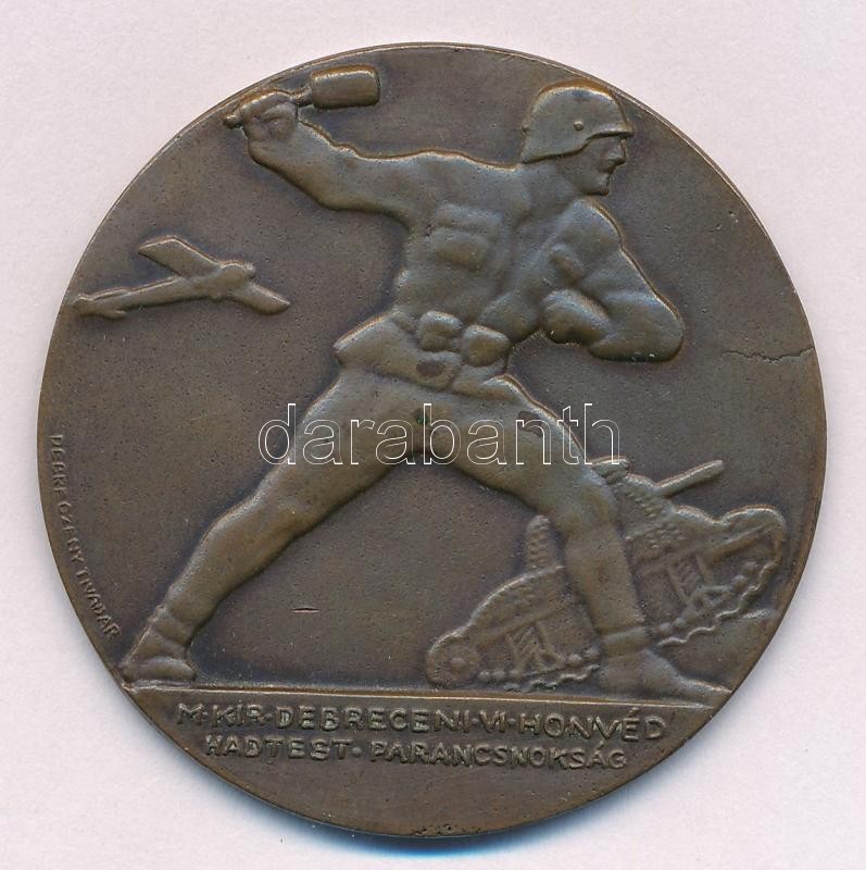 Debreczeny Tivadar (1890-1976) 1942. "Magyar Királyi Debreceni VI. Honvéd Hadtest Parancsnokság / Kegyeleti Stafétaverseny II. díj 1942.X.6." Br díjérem (44mm) T:2 karc