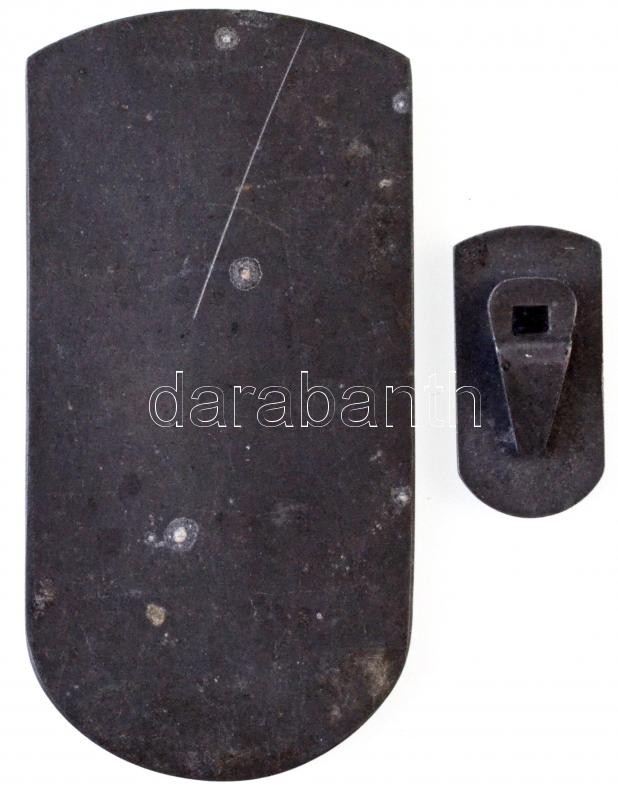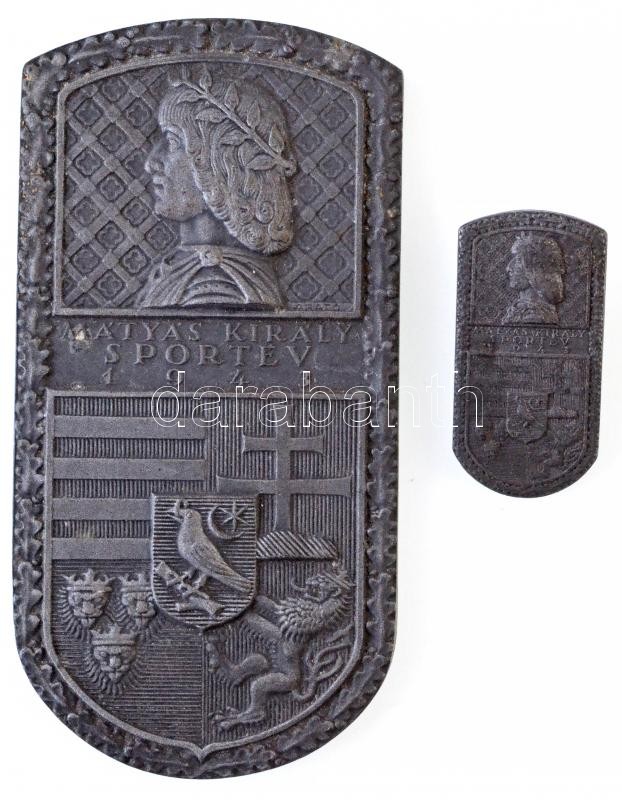 Beschreibung: Arató Gyula (1898-1969) 1943. "Mátyás Király Sportév 1943" hadifém plakett (80x40mm) + gomblyukjelvény (30x16mm) T:2,2- oxidáció