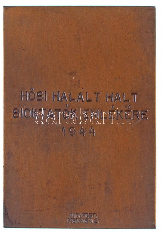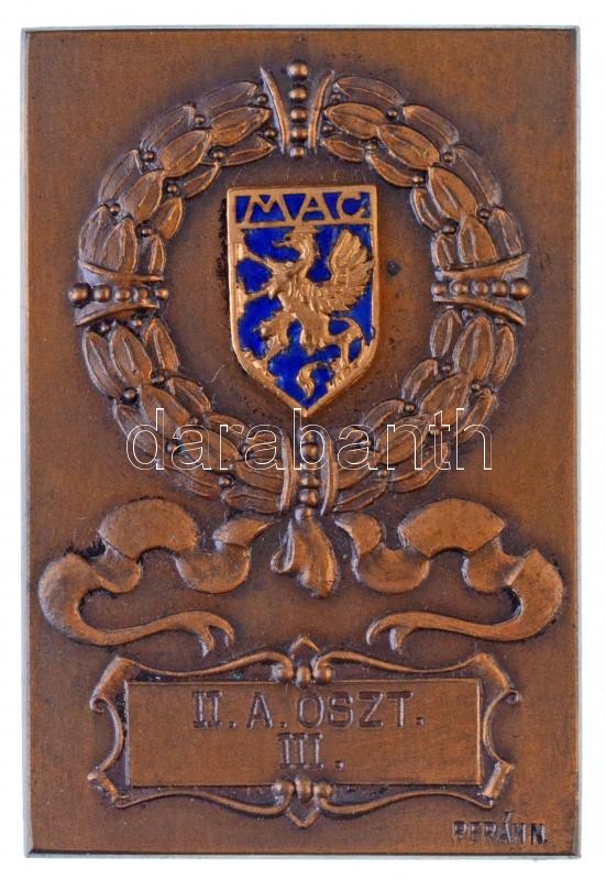 Berán Nándor (1889-1965) 1944. "MAC II. A. oszt. III. / Hősi halált halt síoktatók emlékére 1944" Br emlékplakett a Magyar Athletikai Club zománcozott címerével, "Budapest Döbrentei u. 2." gyártói jelzéssel (53x36mm) T:2,2-