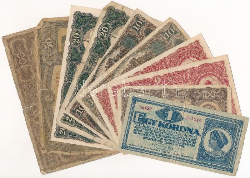 Beschreibung: 1920. 1K + 2K (2x) + 10K (2x) + 20K (2x) + 50K + 100K + 1923. 100K T:vegyes