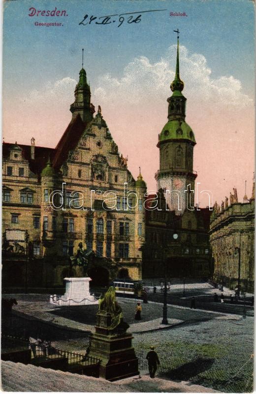 1926 Dresden, Schloss / castle, tram, monument (EK) https://www.darabanth.com/de/372-Fernauktion/372.0/Ansichtskarten/Deutschland~2000044/1926-Dresden-Schloss-castle-tram-monument-EK~II2174053