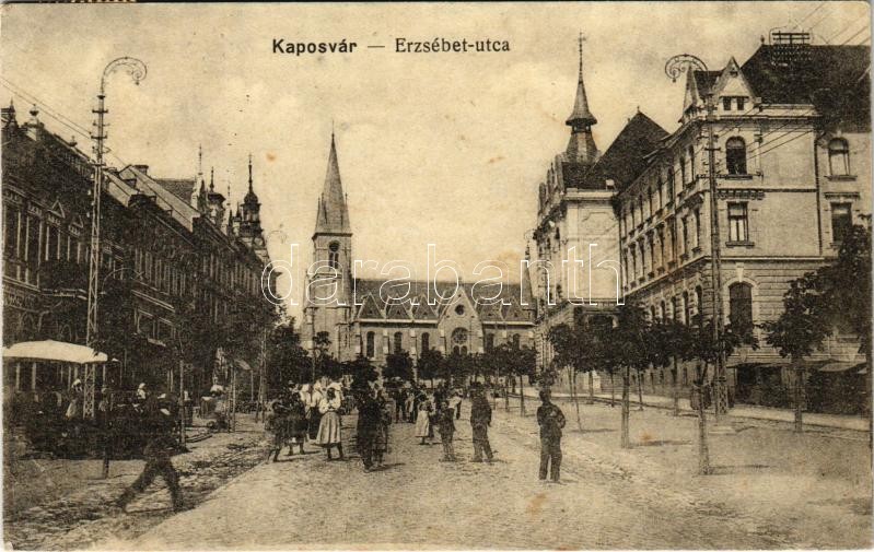 1916 Kaposvár, Erzsébet utca, templom (EB) https://www.darabanth.com/de/372-Fernauktion/372.0/Ansichtskarten/Ungarn~2000005/1916-Kaposvar-Erzsebet-utca-templom-EB~II2170973