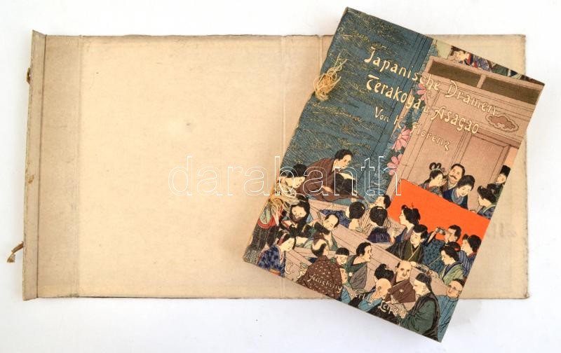 Beschreibung: Karl Florenz: Japanische Dramen - Terakoya & Asagao. Német nyelven, harmadik kiadás. Leipzig, é.n., C. F. Amelangs. Kiadói sérült, karton védÅ‘tokban, rizspapÃr lapokkal, szÃnes illusztrációkkal.