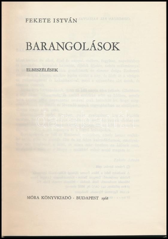 Fekete István Barangolások. Első kiadás. Bp., 1968. Móra. Kiadói félvá... https://www.darabanth.com/de/372-Fernauktion/372.0/Bucher/Bucher-Andere-kuriositaten~1000018/Fekete-Istvan-Barangolasok-Elso-kiadas-Bp-1968-Mora-Kiadoi-felvaszon-kotesben-kissC3~II2169360