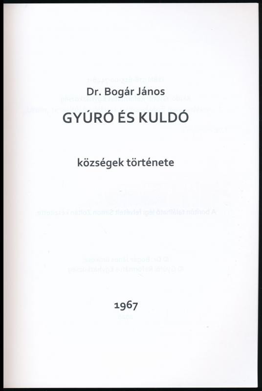 Dr. Bogár János: Gyúró és Kuldó községek története. Gyúró, 2020. Kiadói papírkötés, jó állapotban.