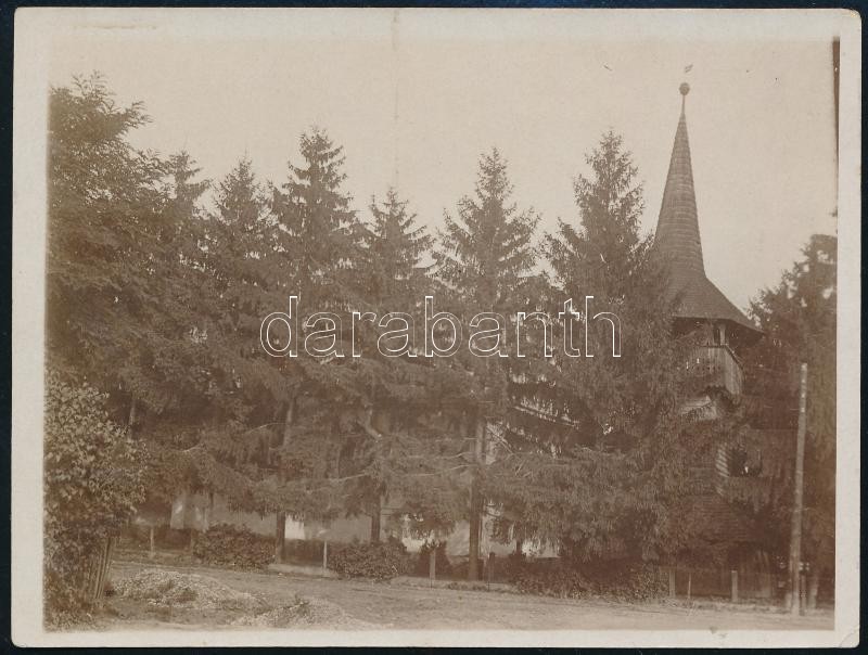 Beschreibung: cca 1925 Kölcse, zsindelyes fa harangtorony, hátoldalon feliratozott fotó, 9×12 cm