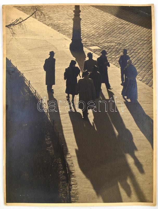 Beschreibung: cca 1930-40 Árnyékok a nagyvárosban, vintage fotó papíron, jobb felső sarkaiban törésnyommal, 39x29 cm