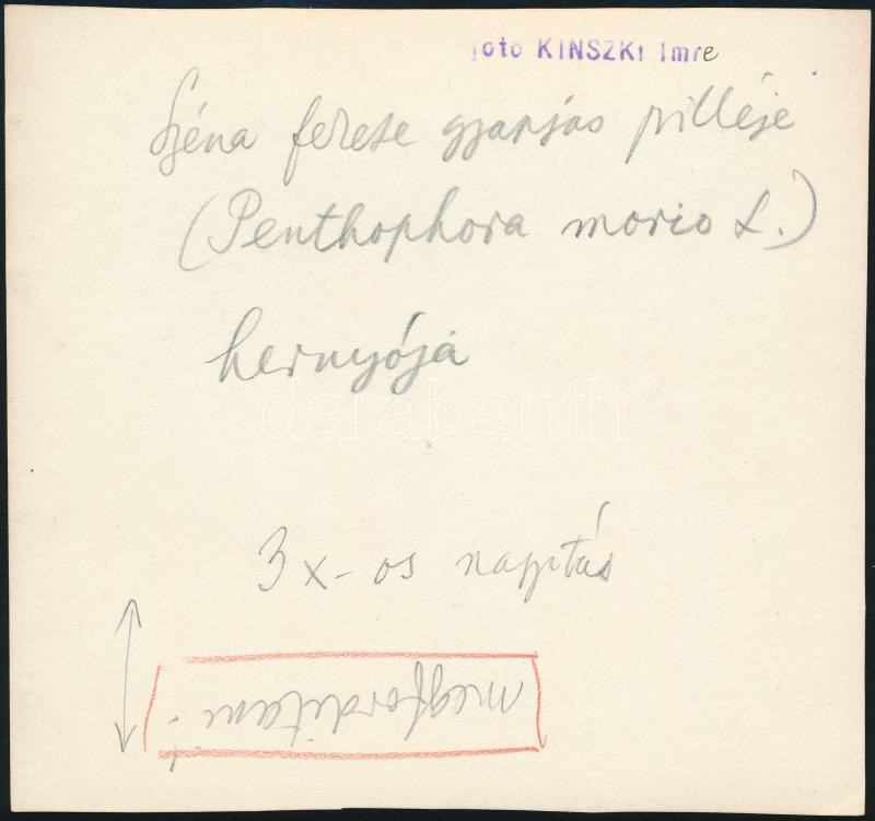 Beschreibung: cca 1933 Kinszki Imre (1901-1945) budapesti fotóművész hagyatékából, a szerző által feliratozott, pecséttel jelzett vintage fotó (Hernyó), 12,5x13,5 cm