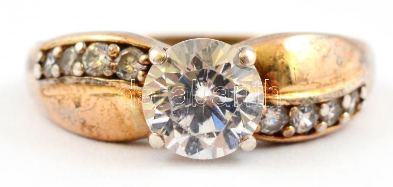 Beschreibung: Aranyozott ezüst(Ag) gyűrű, kövekkel, jelzés nélkül, méret: 53, bruttó: 4,3 g