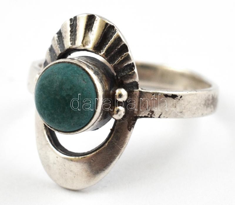 Beschreibung: Ezüst(Ag) gyűrű zöld kővel, jelzett, deformációval, méret: 52, bruttó: 2,5 g