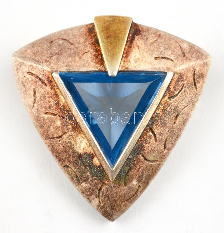Beschreibung: Ezüst(Ag) háromszög alakú medál, szintetikus kék kővel, jelzett, 2,5×2,5 cm, bruttó: 5,7 g