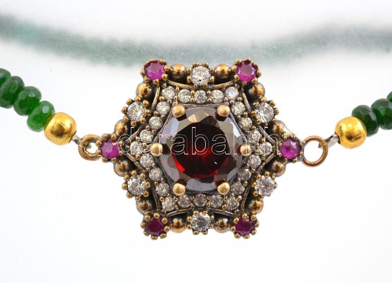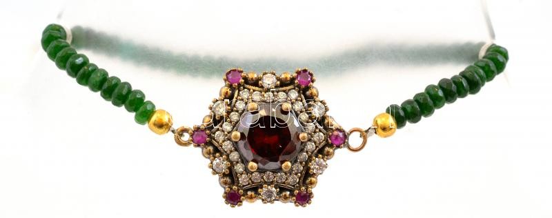 Beschreibung: Ezüst(Ag) kövekkel kirakott medál, gumírozott gyöngy karkötővel, jelzett, bruttó: 12 g