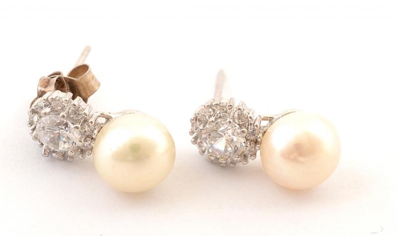 Beschreibung: Ezüst(Ag) sósvizi gyöngyös fülbevalópár, cirkónia kövekkel, jelzett, h: 1,5 cm, bruttó: 2,33 g