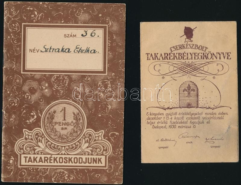 cca 1930-60 3 darabból álló tétel. 1930 Cserkészbolt takarékbélyegkönyve, bélyegek nélkül + 1947 betétkönyv néhány bejegyzéssel + 1960 OTP takarékbetét-könyv sok bejegyzéssel