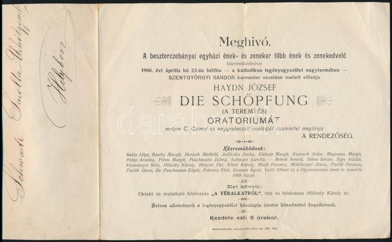 1900 Besztercebánya, meghívó az egyházi ének- és zenekar által előadot... https://www.darabanth.com/de/372-Fernauktion/372.0/Kunst-Dokumente-andere-Sammelgebiete/Drucksachen~30/1900-Besztercebanya-meghivo-az-egyhazi-enek-es-zenekar-altal-eloadott-Haydn-Die-Schopfun~II2172987