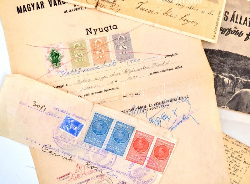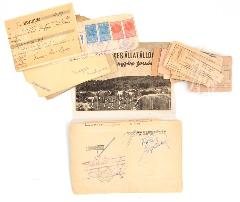 Beschreibung: Vegyes papírrégiség tétel, közte gépkönyv, értesítés, tájékoztató, levelezőlap stb.