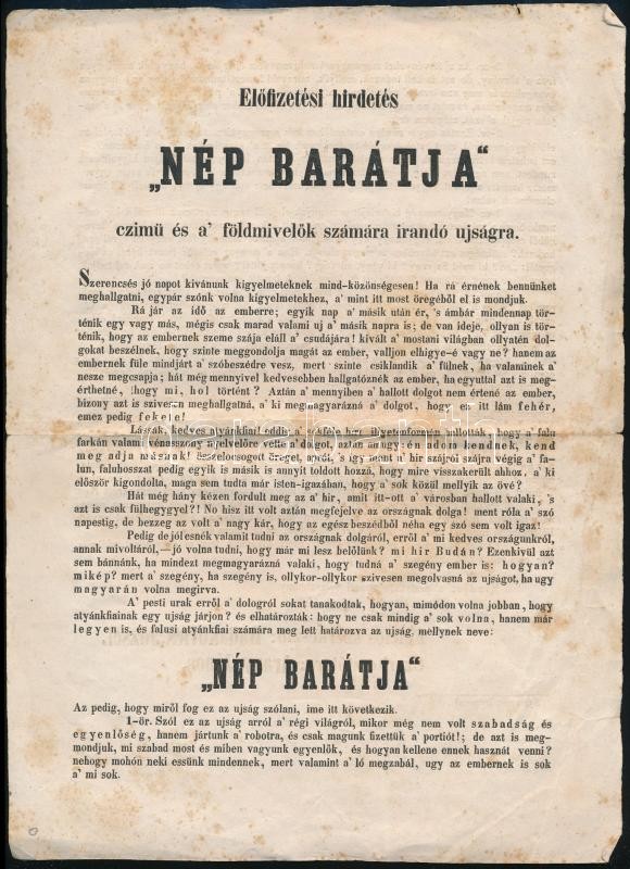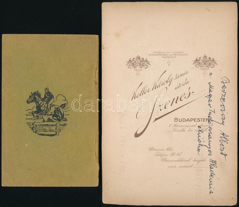 cca 1848-1849. "Nép Barátja" előfizetési hirdetés + 1889. 25. Paragrafus, Bp. Erősen szakadozott a hajtások mentén + 1915 Magyar Turfkrónika. Szerk.: Őszi Kornél. Bp., Pallas. Kiadói papírborítóban, kopottas állapotban + cca 1918. Berzeviczy Albert, az MTA egykori elnökének keményhátú fotója, hátulján feliratozva 19x12,5 cm