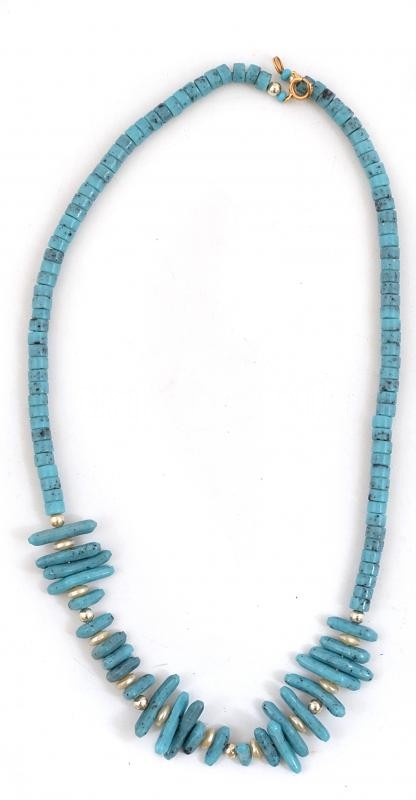 Türkiz nyaklánc, összekötő elemekkel, h. 48 cm https://www.darabanth.com/de/372-Fernauktion/372.0/Kunst-Dokumente-andere-Sammelgebiete/Flohmarkt~11/Turkiz-nyaklanc-osszekoto-elemekkel-h-48-cm~II2174350