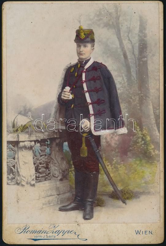 1880 Bécs, huszár kézzel színezett keményhátú fotója, 16,5×11 cm https://www.darabanth.com/de/372-Fernauktion/372.0/Kunst-Dokumente-andere-Sammelgebiete/Militaria~27/1880-Becs-huszar-kezzel-szinezett-kemenyhatu-fotoja-16-5C39711-cm~II2168823