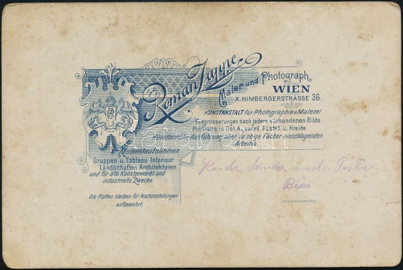 Beschreibung: 1880 Bécs, huszár kézzel színezett keményhátú fotója, 16,5×11 cm